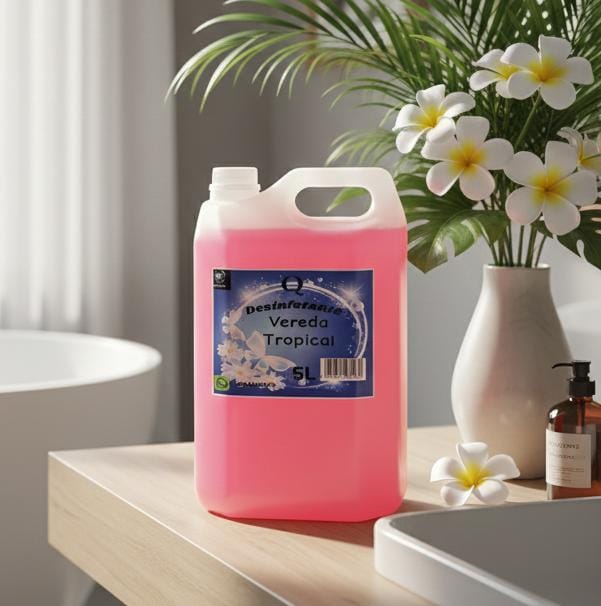 A embalagem de 5 litros do Desinfetante Vereda Tropical é a solução econômica e altamente eficaz para lares grandes, estabelecimentos comerciais, ou para quem busca o máximo de rendimento e praticidade na rotina de limpeza.